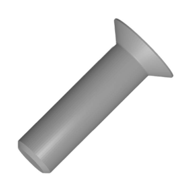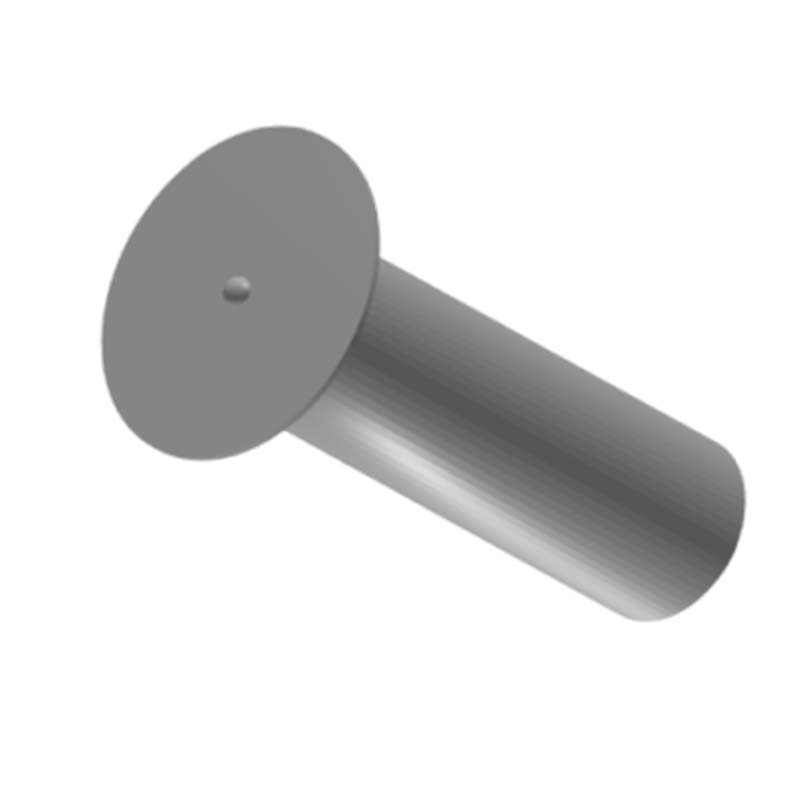 Os pinos de cabeça chata são essencialmente um tipo de pino de soldagem. Suas cabeças são cônicas e ficam quase niveladas com a peça durante a soldagem. O ângulo de 100° é crucial, pois permite que a cabeça do pino afunde levemente no material, mantendo assim um perfil baixo. Quando for necessário manter a superfície lisa e plana após a soldagem, como em superfícies onde a peça tem tendência a ficar presa, este tipo de pino pode ser utilizado.
