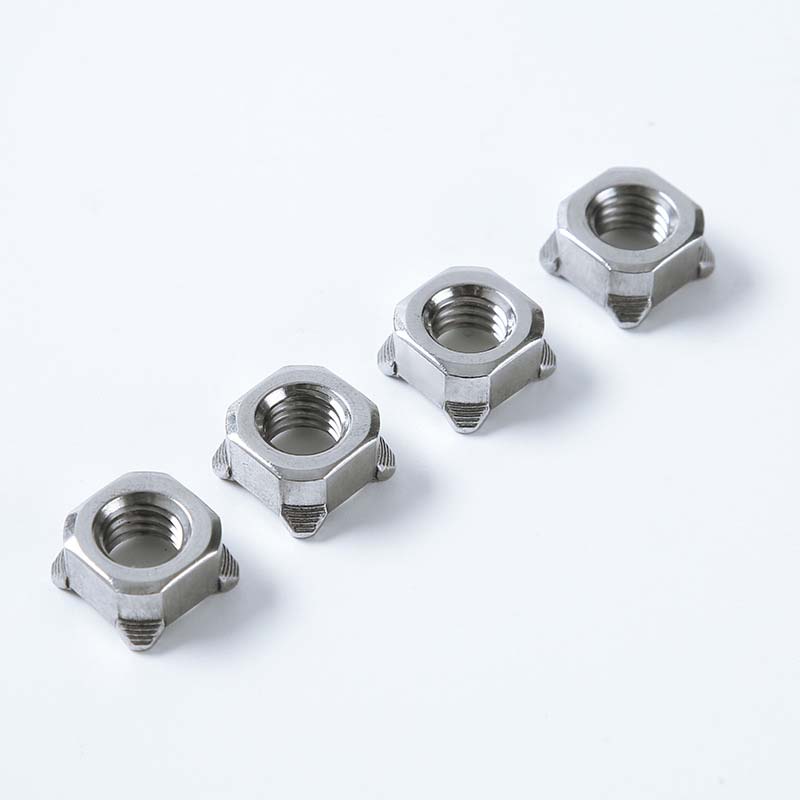 As porcas quadradas soldadas classe 5 com tipo 1D possuem quatro lados planos. O centro da porca possui um orifício roscado padrão, que é conveniente para uso com parafusos correspondentes. Na superfície de soldagem da porca existem várias pequenas saliências, que são as peças principais para a soldagem.