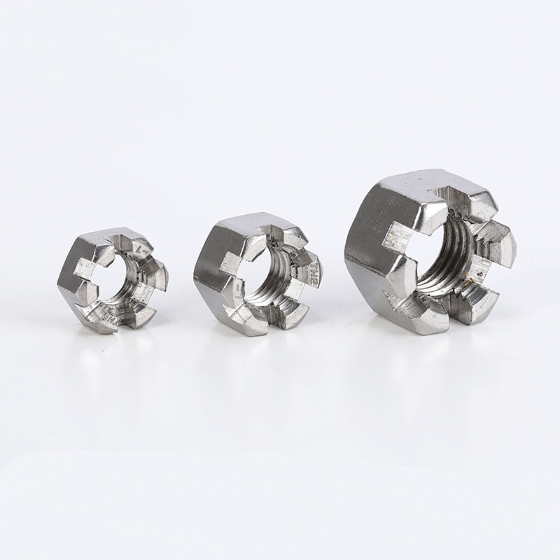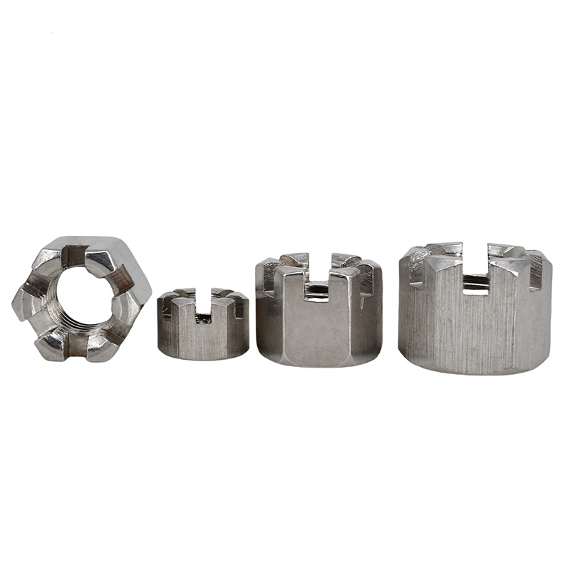 A escolha do material para a corrosão que conquista a noz da coroa com slot segue regras rígidas para garantir que elas funcionem como deveriam. As nozes de aço podem atender aos requisitos de muitos padrões convencionais, incluindo ISO 898-2 (cobrindo os níveis de desempenho 6, 8, 10 e 12) e o SAE J995 (cobrindo os níveis 5 e 8). Eles também cumprem padrões como ASTM A194/A563 e são adequados para os cenários de aplicação mais comuns. Os aço inoxidável usam AISI 304/316 ou ASTM F594. Para trabalhos aeroespaciais difíceis, eles usam ligas de alto desempenho como A286 ou Inconel 718. O grau material da porca de coroa com fenda tem uma influência direta e decisiva em seu índice de força, resistência à temperatura e resistência à corrosão.