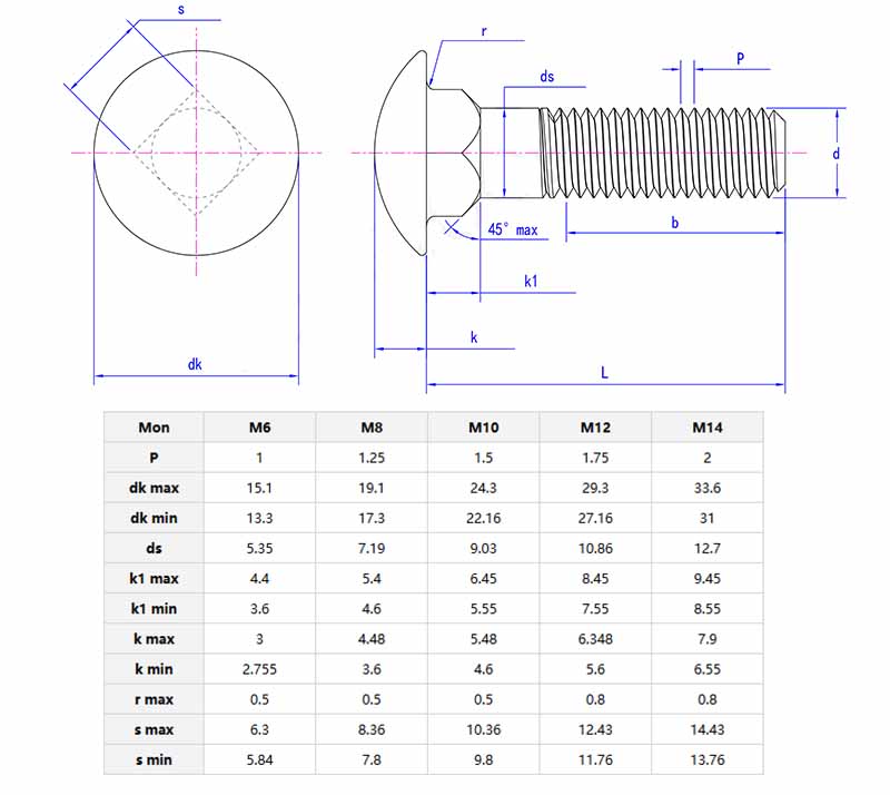 O pescoço quadrado do parafuso é muito especial. Ao instalar, faça uma ranhura quadrada no material que corresponda ao pescoço quadrado. Depois de inserir o parafuso, o pescoço quadrado será firmemente apertado na ranhura. Ao apertar a porca, o parafuso não gira. Os trabalhadores podem apertar a porca com uma mão, o que melhora a eficiência da instalação e torna a conexão mais firme e confiável.