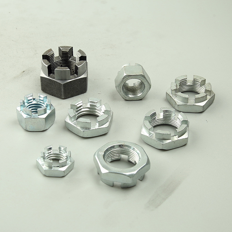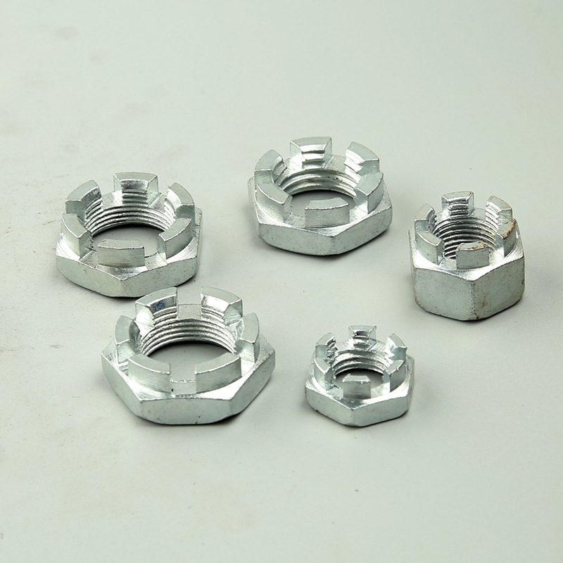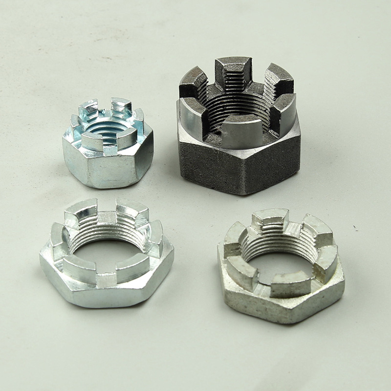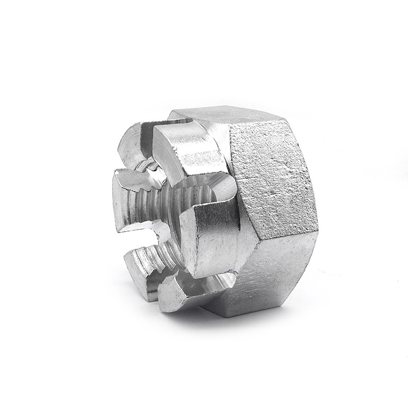 É por isso que essa noz de coroa com fenda é obrigatória para empregos importantes para a segurança, como nas indústrias automotivas ou aeroespaciais.