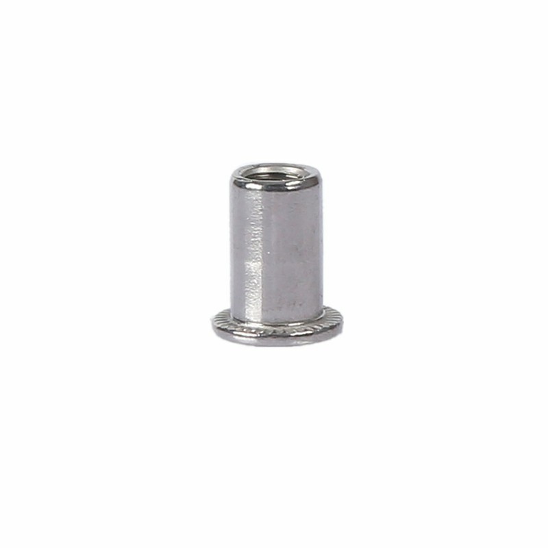 R: A instalação de nossas nozes rebitadas é muito simples e você pode concluir a instalação operando de apenas um lado. Você precisa usar uma pistola de rebite especialmente projetada ou uma máquina hidráulica para puxar o mandril - durante a operação, a manga se deformará e segurará a peça de trabalho pelas costas. Isso forma um fio permanente e forte.