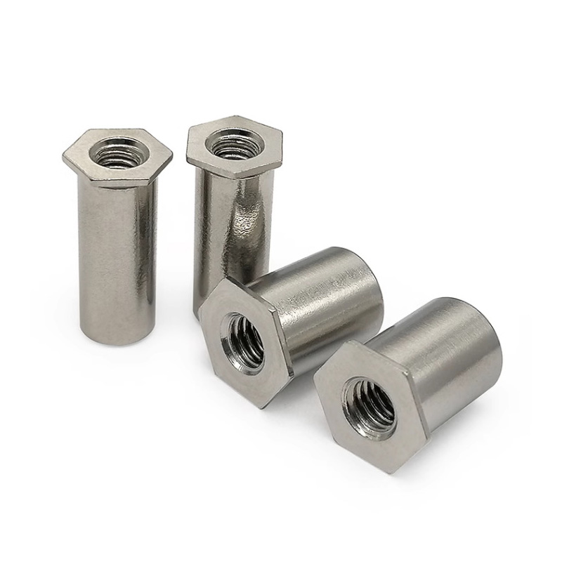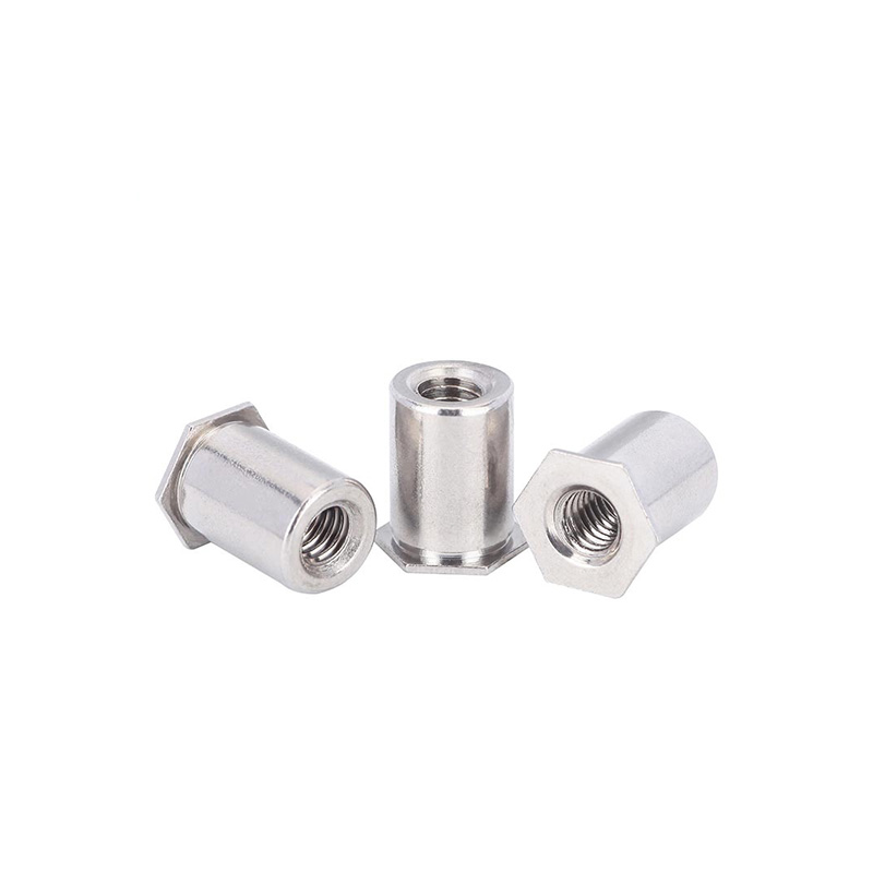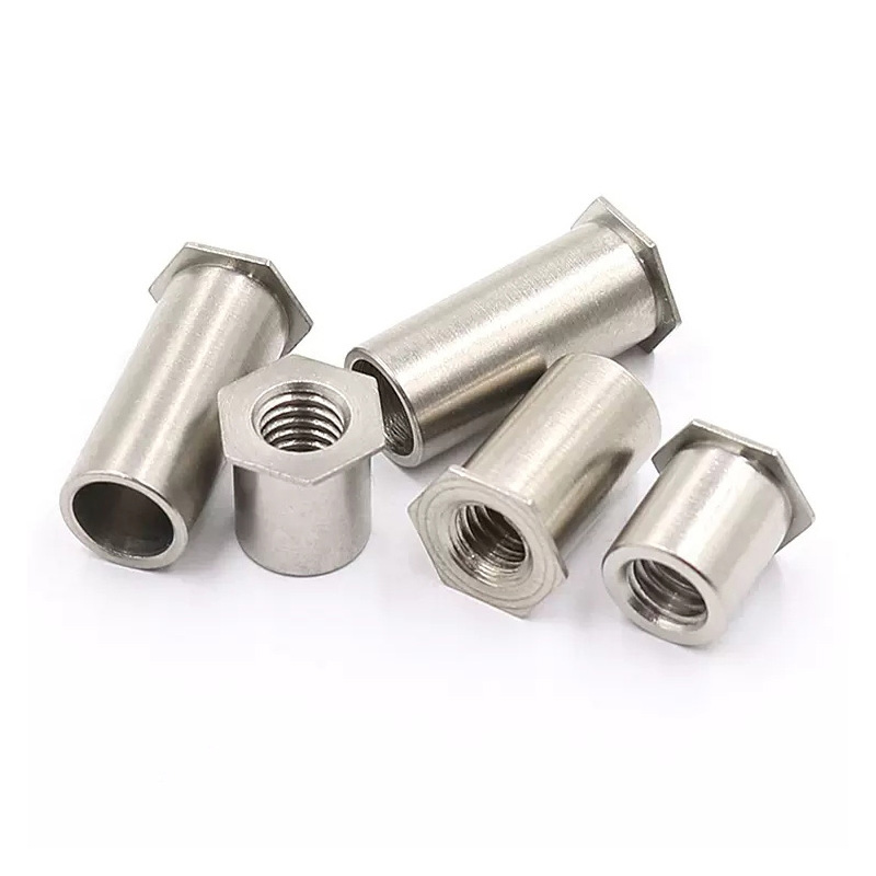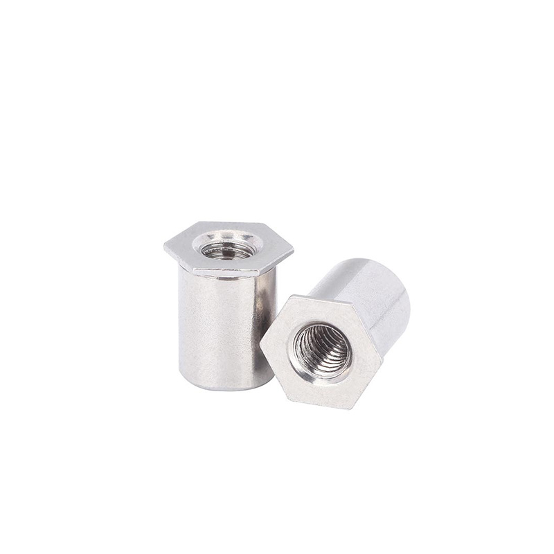 A coluna de porca de rebite hexagonal de aço inoxidável endurecido é excelente para lidar com altas cargas estáticas e dinâmicas. Seu formato hexagonal realmente ajuda a combater forças de torção, por isso não se solta quando há vibração, super importante para carros e máquinas. Ao instalá-lo, a grande protuberância que se forma na parte traseira distribui as forças de fixação por uma área mais ampla, o que reduz a tensão no material.