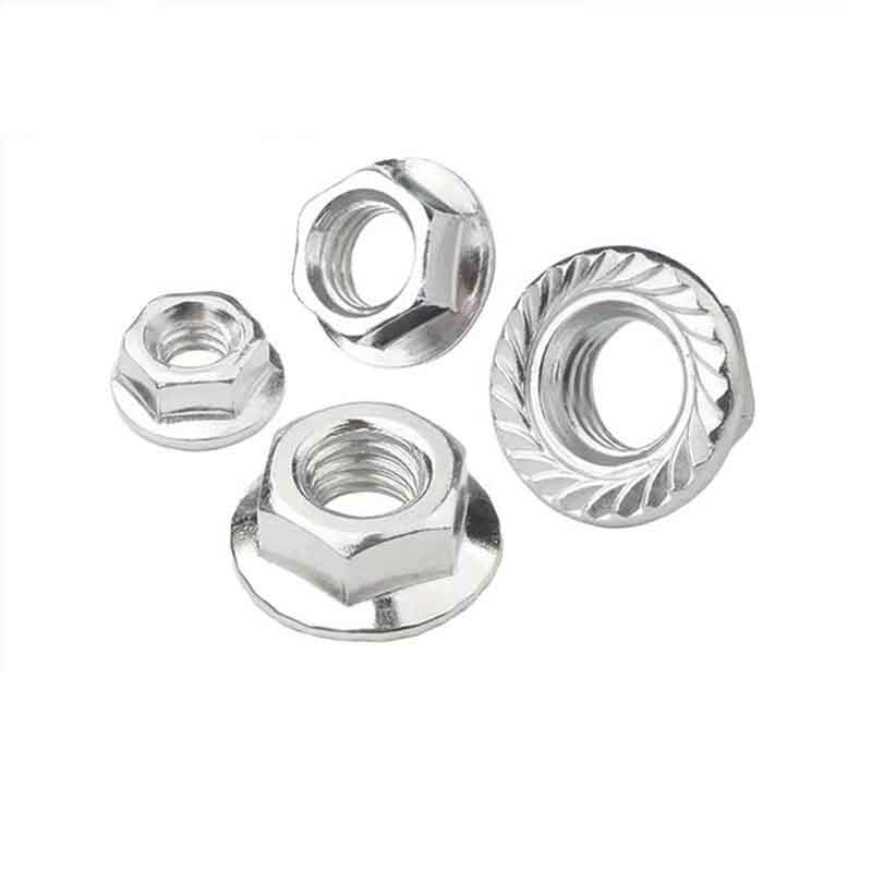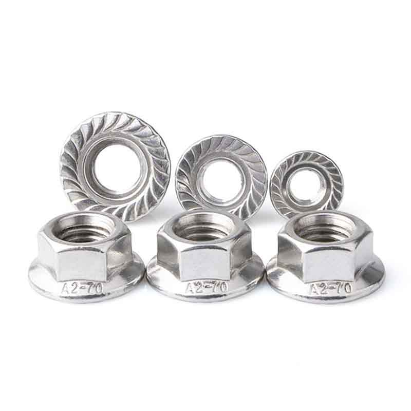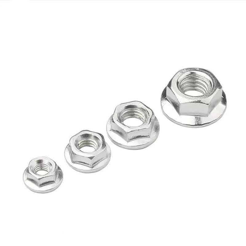 Existem pequenas serrilhas na parte inferior do flange. Isso os ajuda a resistir muito bem às vibrações, para que não se soltem quando há cargas em movimento. Isso é uma grande vantagem em comparação com o uso de uma porca normal com arruela separada.