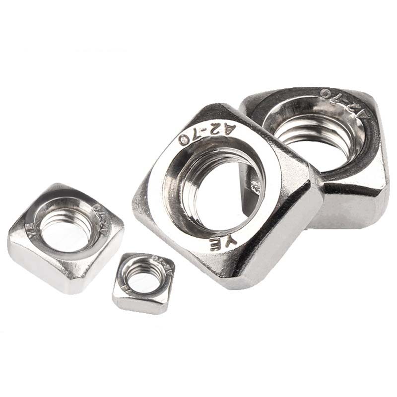 Os detalhes do material para porcas quadradas chanfradas simples de alta precisão são importantes. Os mais comuns são ASTM A194 GR 2H (aço carbono), ASTM A563 GR DH (aço-liga, tipo grau 8), SAE J995 GR 8 (aço-liga), ISO 898-2 Classe 10 (aço-liga métrico) ou aço inoxidável ASTM F594. Esses detalhes explicam do que o material é feito, o material mecânico mínimo, como resistência à tração, resistência ao escoamento, dureza e os tratamentos térmicos necessários. Dessa forma, a afirmação de “alta resistência” permanece sempre a mesma.