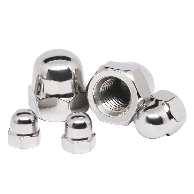 As porcas hexagonais com cúpula de alta resistência têm um soquete sextavado interno (portanto, você usa uma chave Allen) para instalá-las e apertá-las. Às vezes, há uma base em formato hexagonal na parte inferior, sob a cúpula, para isso também. Este design permite aplicar alto torque, o que ajuda a obter a força de fixação necessária, ainda bem que eles são fortes o suficiente para isso.