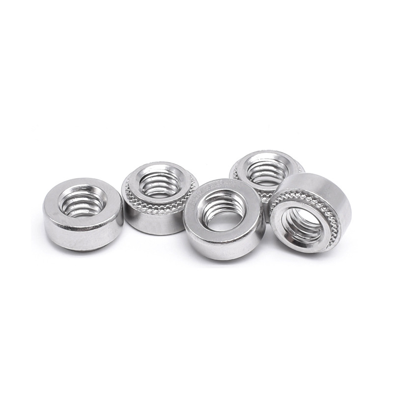 A principal coisa sobre uma porca de conjuração permanente é que ela pode formar uma conexão permanente e forte diretamente em placas de chapa dúctil ou placas não ferrosas sem a necessidade de roscas pré-perfuradas. Quando você o instala, uma prensa empurra a porca permanente no material para o material. Sua forma específica faz o metal ao redor dele se mover e fluir para um recuo em forma de anel (como uma pasta ou ranhura) sob a cabeça e/ou ao redor da haste.