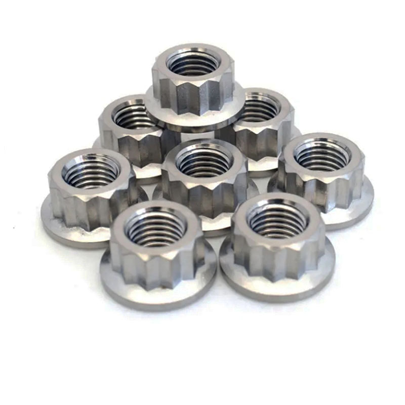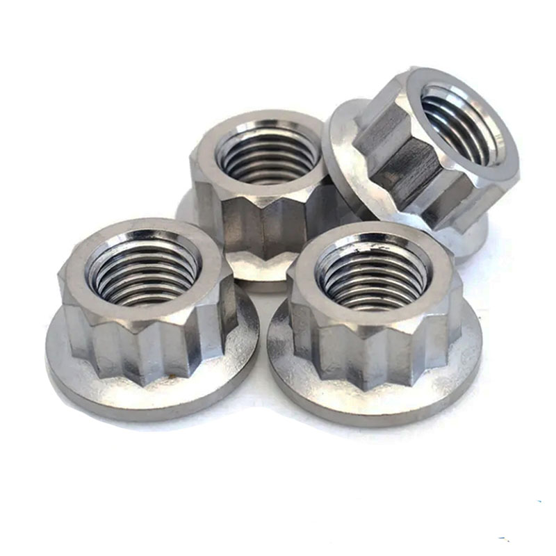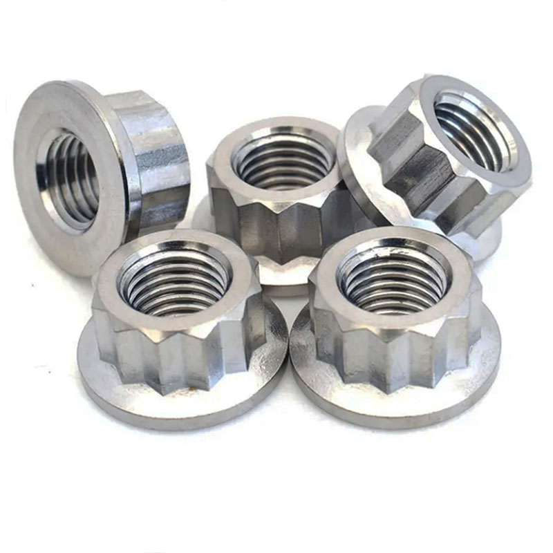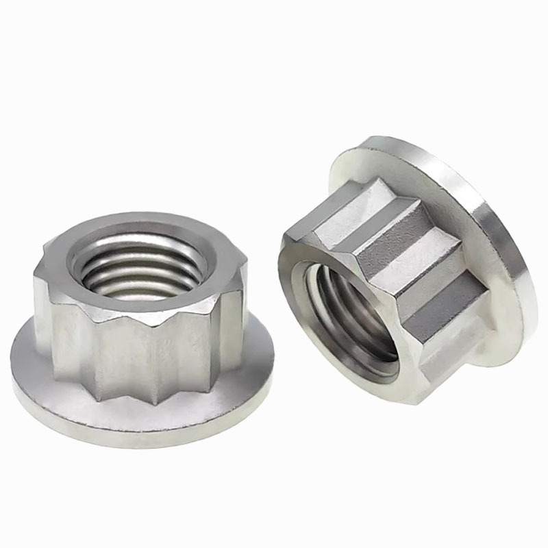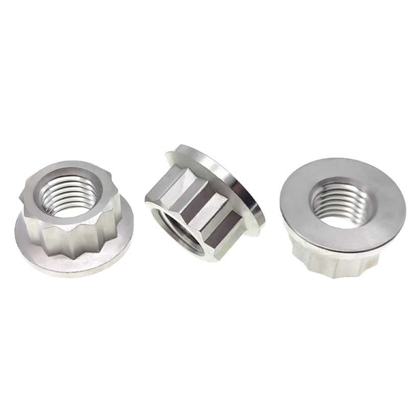 Temos nozes de arruela de 12 pontos em diferentes materiais-como aço carbono, aço inoxidável (coisas como A2-70, A4-80) e alumínio.