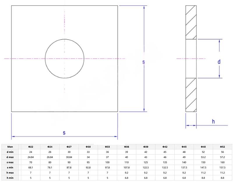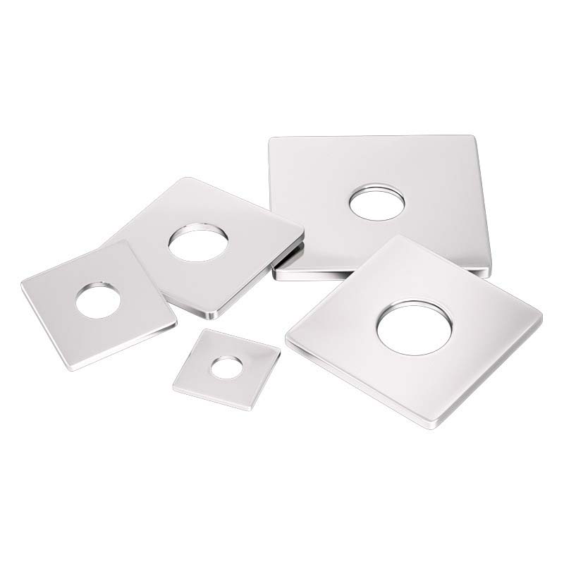 Arruelas quadradas para estruturas de madeira (também chamadas arruelas de madeira quadrada) são acessórios comumente usados em estruturas de madeira. Sem arruelas, apenas porcas ou parafusos, são usados parafusos, o que pode facilmente fazer com que a madeira seja amassada ou rachada devido à pressão local na cabeça. As lavadoras são usadas para aumentar a área de contato e proteger a superfície da madeira.