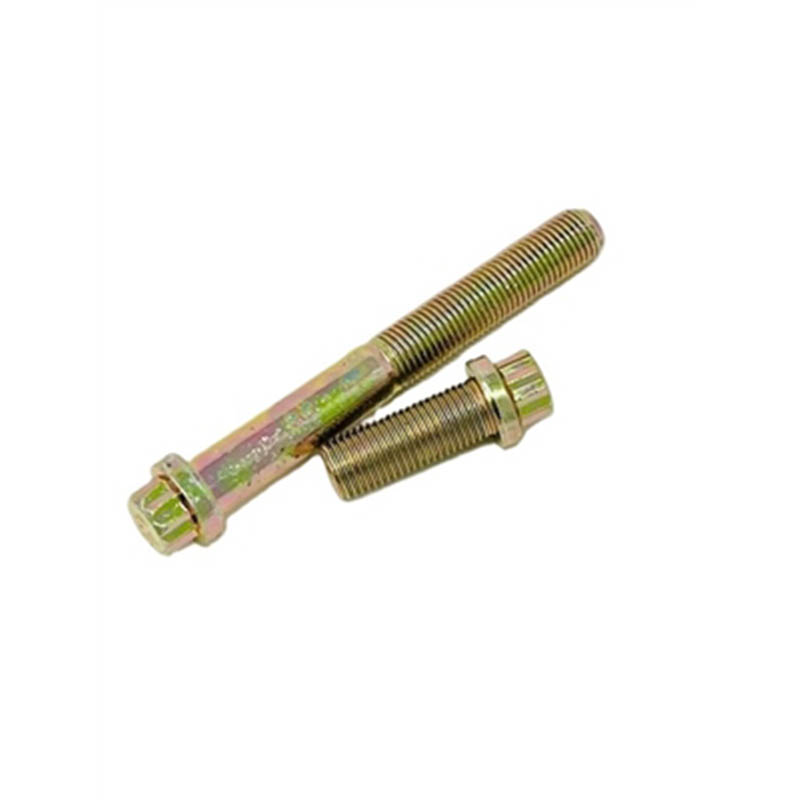 Estes parafusos de flange de 12 pontos de aço de alta resistência têm um formato padrão e prático, sem detalhes decorativos extras. A parte superior é uma cabeça de 12 lados, feita para funcionar com um soquete de 12 pontos correspondente para apertar ou afrouxar. Logo abaixo do cabeçote há um flange largo e plano que funciona como uma arruela embutida, então você não precisará de uma arruela separada para a maioria dos trabalhos. O eixo abaixo do flange é reto, com roscas lisas e uniformes que descem até o fim para encaixar porcas ou furos pré-roscados. Não há arestas ou rebarbas que dificultem a instalação. Todo o fixador é compacto e sólido, feito para ficar plano contra superfícies para um ajuste perfeito. Cada peça tem as mesmas medidas exatas, então cada uma tem a mesma aparência e se ajusta – o que facilita o uso para trabalhos de montagem repetidos ou substituições rápidas.