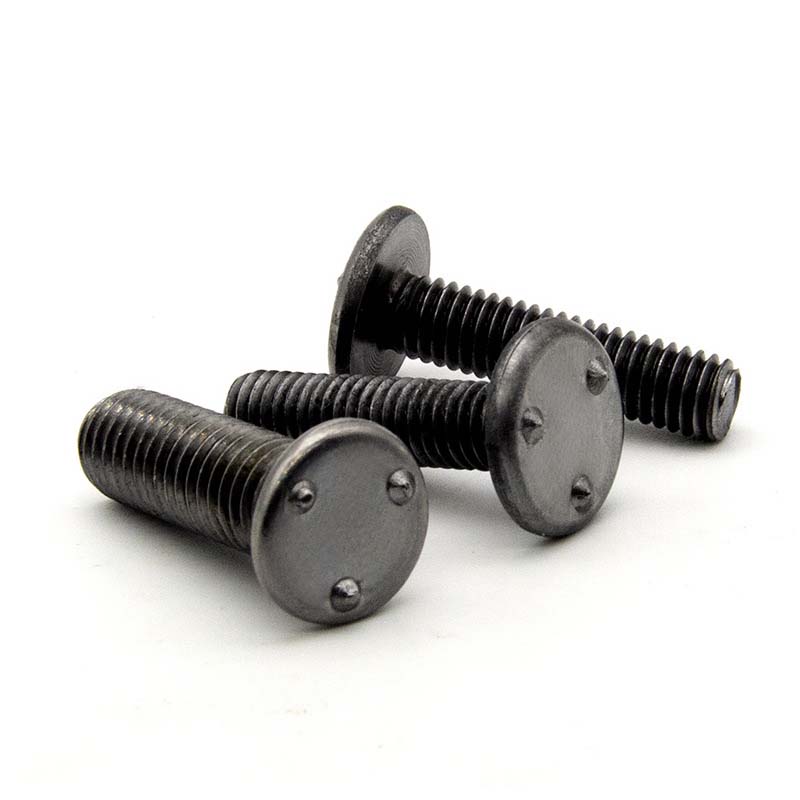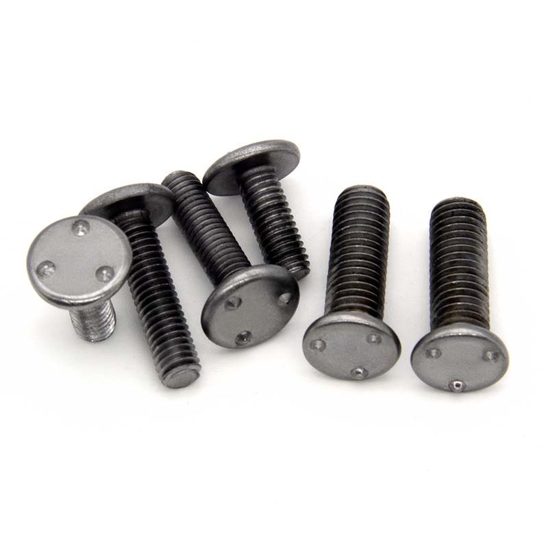 Este parafuso de solda de projeção de pontas sobre a cabeça é forte e eficiente. Durante o processo de soldagem, a corrente é concentrada na plataforma de soldagem convexa, o que permite que os parafusos e as peças soldadas sejam firmemente conectadas entre si em um tempo muito mais curto do que com os métodos de soldagem comuns. As três estações de soldagem convexas podem ajudar os parafusos a encontrarem automaticamente suas posições corretas.