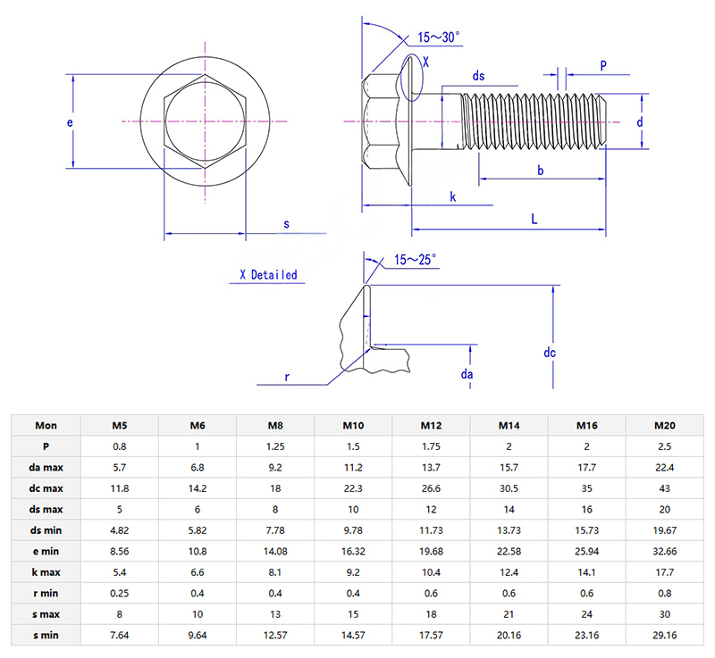 Digite um grande flange hexágono parafusossão fortes e estáveis. Eles são de tamanho grande, para que possam suportar maior força. A área de contato entre o flange e o objeto conectado aumentou e não se soltará facilmente após ser apertado.