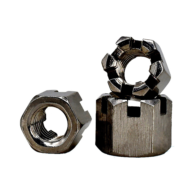 R: A principal coisa da noz inabalável da coroa com caça -níqueis é o slot cortado na coroa. Depois de apertar a porca no parafuso, coloque um pino dividido (pino de cotter) através de um orifício pré-perfurado na haste do parafuso e depois através desse slot. Então você dobra as extremidades do pino de volta. Isso impede fisicamente a porca de coroa com fenda girando ou afrouxando - mesmo com vibrações muito fortes ou cargas em movimento. É por isso que funciona bem para importantes empregos relacionados à segurança.