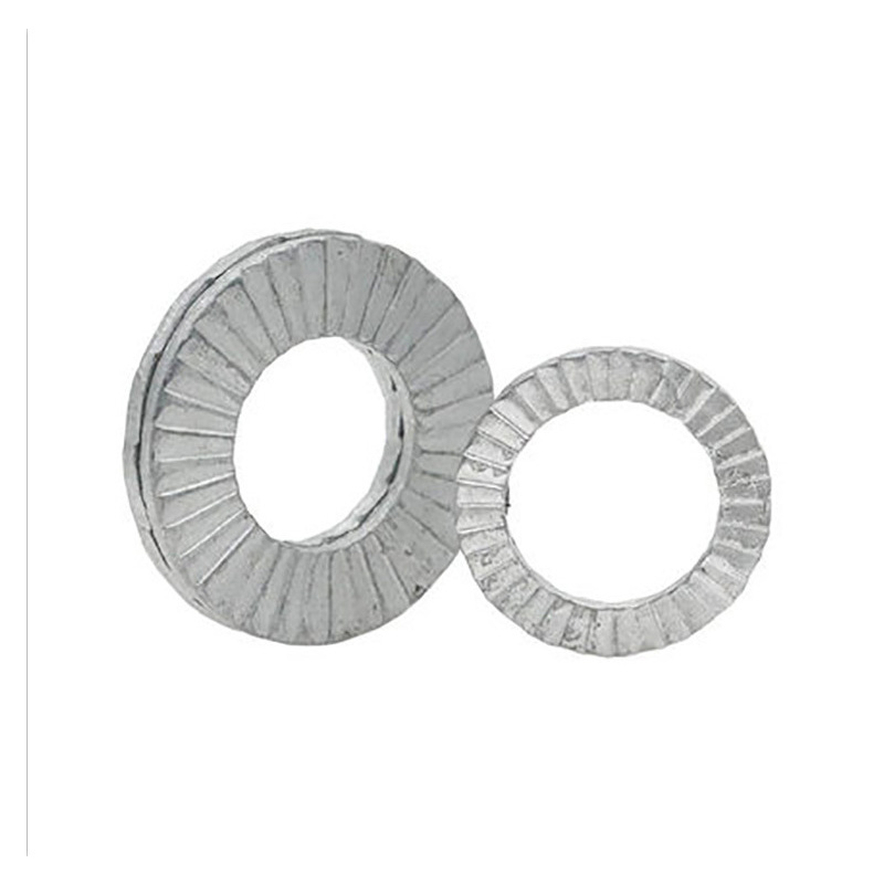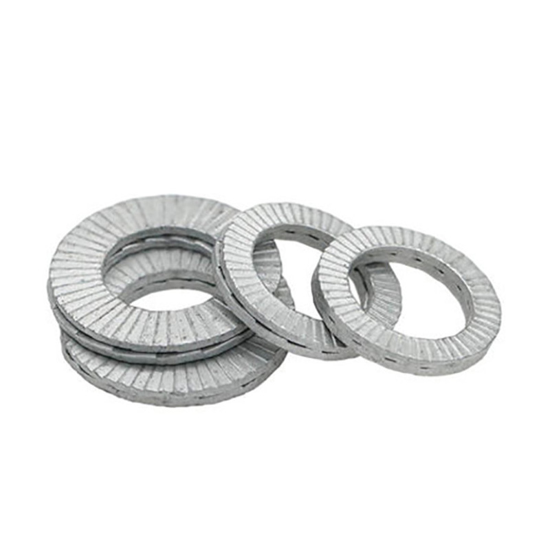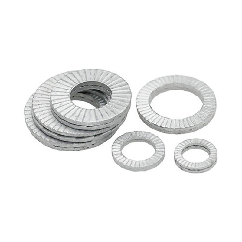 R: Uma arruela de travadora auto-travadora dupla à prova de vibração é um tipo de arruela com pontas curvas de ambos os lados. Ao apertar um parafuso, suas pontas são espremidas e embutidas na cabeça do parafuso e na superfície de acasalamento, respectivamente. Isso cria uma forte pressão elástica que impede que o parafuso afrouxe, mesmo em ambientes sujeitos a vibrações ou flutuações de temperatura.